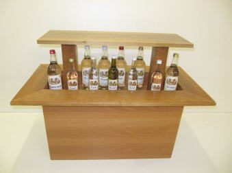 Dieser Salontisch enthält eine versenkbare Bar ohne Elektronik. Somit sind keine evtl. störenden Kabel zu sehen.