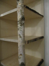 Diese Garderobe wurde basierend auf einer Kundenzeichnung gefertigt. Sie besteht aus Birken-Massivholz. Die Rinde (bestehend aus Borke, Bast und Kambium) wurde aus ästhetischen Gründen teilweise mitverarbeitet. Ein besonderes Highlight sind die als Ganzes verwendeten Stämme.